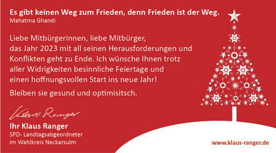 Beschäftigt man sich am Ende eines Jahres mit dem vergangenen, so hofft man, dass sich die Wünsche des letzten Jahreswechsels erfüllt haben. Heute müssen wir feststellen, dass wir mit umfangreicheren Problemen zu kämpfen haben wie noch vor einem Jahr. In vielen Teilen der Welt herrscht Unruhe, in über 20 Ländern wird Krieg geführt. Unser Planet kommt nicht zur Ruhe und auch in unserem Land stehen wir vor großen Herausforderungen, in denen es nicht zuletzt um den Schutz unserer demokratischen Grundordnung geht.