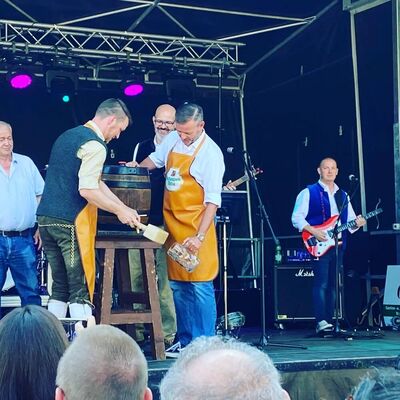 Eröffnung und Fassanstich beim Talmarkt in Bad Wimpfen, der endlich wieder stattfinden durfte! Guter Job von Bürgermeister Andreas Zaffran beim Debüt, drei Schläge, alles dicht. Als gebürtiger Bayer weiß er eben, wie man mit Bier umgehen muss.