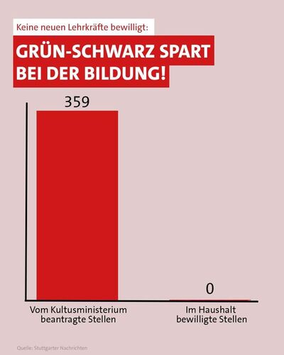 Nach neuen Stellen für Lehrkräfte kann man im neuen Haushaltsentwurf von Grün-Schwarz lange suchen. Man kann sich die Suche aber auch gleich sparen. Es gibt nämlich keine!